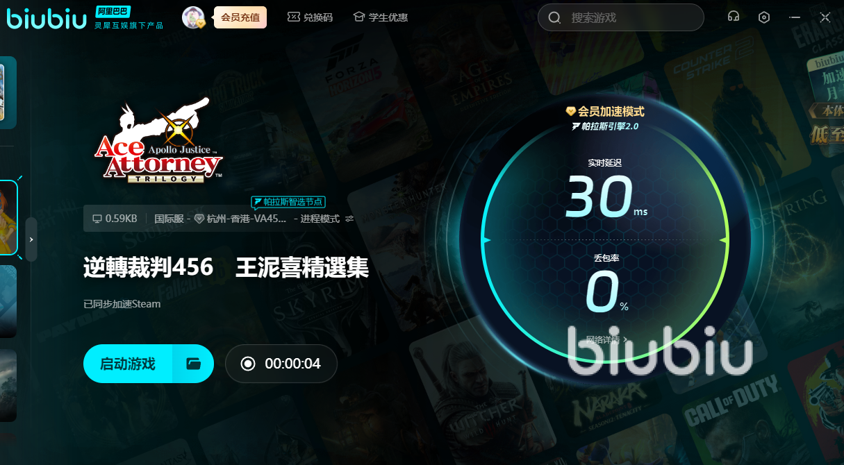 目前逆转裁判456已经在很多平台上登陆了,例如大家经常使用的NS、steam等都有能购买到这部非常不错的作品进行游玩。但似乎有很多同学都遇见了闪退这类因为网速而导致的问题,这时一款优质的加速工具就是大家的刚需了,因为它能很好的解决这类问题。在下载成功之后,经过简单的搜索名称、进入专区,点击一键加速这三步简单的操作,就能将会出现问题的概率降至最低了。另外右侧还有能够实时查看延迟情况的小窗口,非常方便安心。