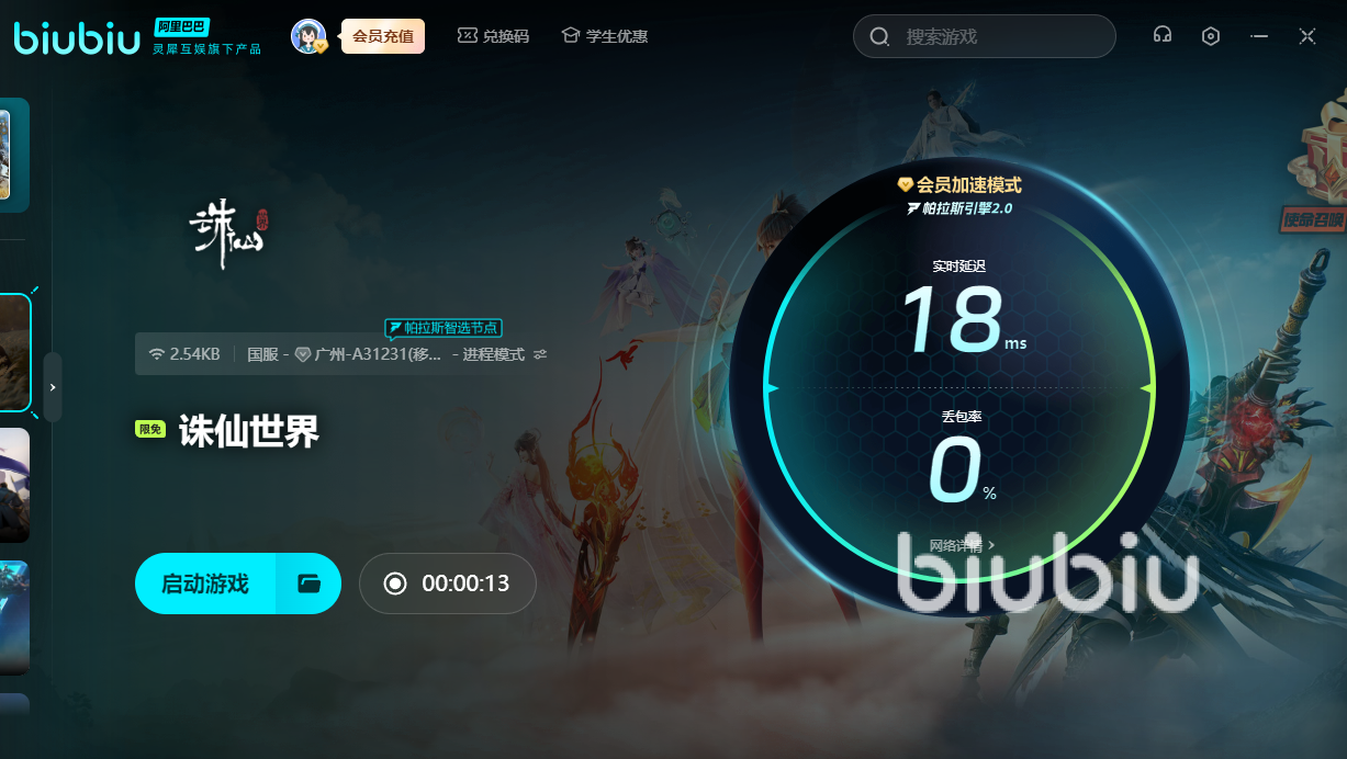 我们参加一些pvp玩法时延迟高,即便我们用的是最强的青云也会瞬间被人击败。这时可以用上biubiu,通过提速后就可以快速使用你的剑法并击中对手,防止自己失误连连。如果在对战突然闪退的话,就算自己即将获胜也会被判为失败。我们可以用上加速器,网络稳定后,就算是长时间的多人团战,依然有信心战斗至最后。要是大家偶尔想要体验其他修仙大作的话,也可以通过biubiu,轻松为其他修仙大作加速,随心畅玩不受限!