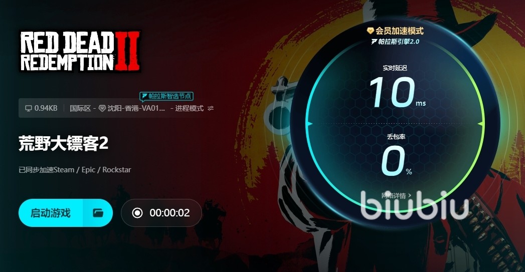 我们在下载好biubiu之后,可以首页搜索荒野大嫖客2即可找到相应的游戏,然后点击一下就能快速开启加速了。加速完成,我们还能实时追踪当前的实时延迟、丢包数据,本地波动次数过多,大家也能第一时间了解。biubiu会根据我们当前所处的地区以及网速来智能匹配节点,帮助我们构建一个专属加速通道,而且它的性价比也是很高的,完全不用担心乱收费的问题。像新用户首次充值的话,基本算下来一天只需要几毛钱就可以了,价格真的很低了。另外,biubiu还拥有专属社区,在这个社区内我们是能够与其他玩家进行互动交流,还能学习大佬们的成长技巧。
