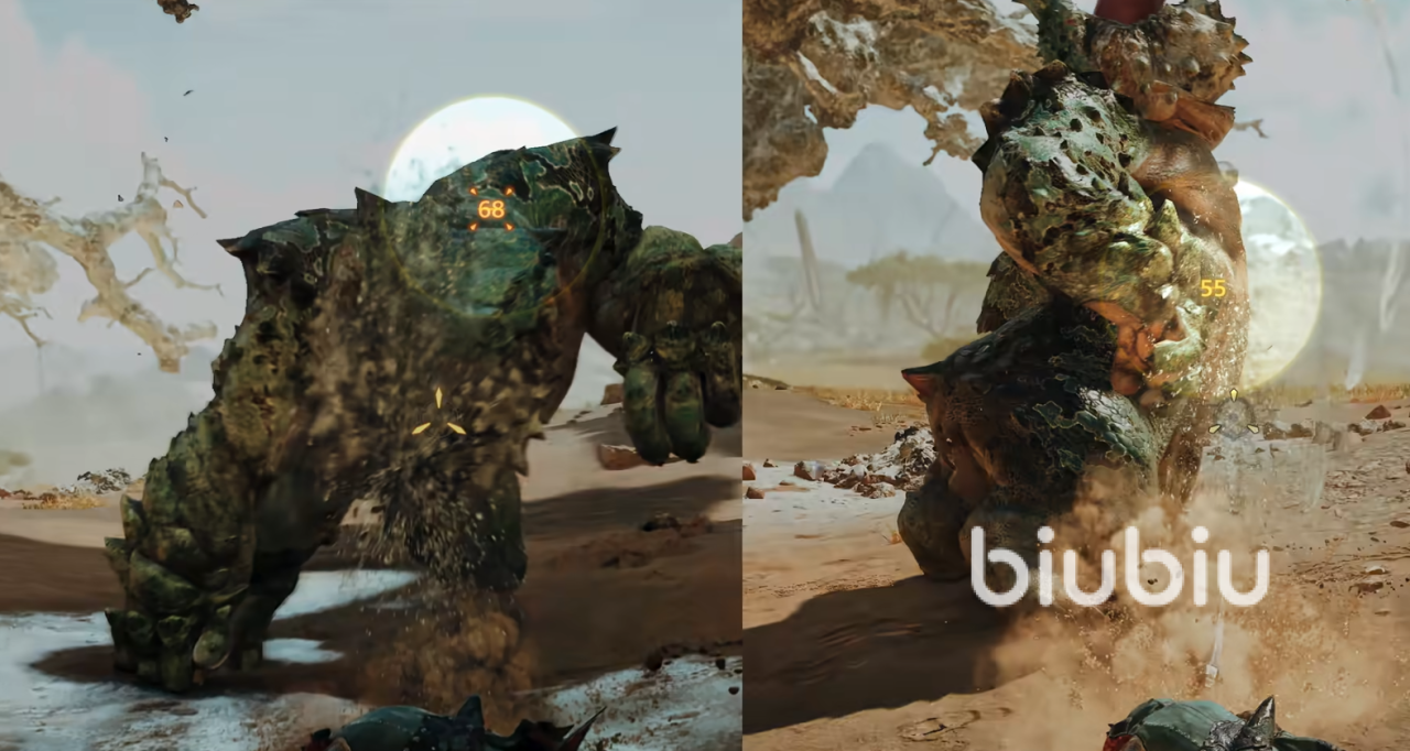 进入集中模式后,玩家可以精准瞄准要攻击或防御的目标。此时,猎人会自动朝向视角的正前方进行攻击和防御动作,操作更加流畅、精准。集中模式的一大亮点,就是会将怪物身上的“伤口”与已暴露的“弱点”以高亮形式显示。这大大降低了玩家命中要害的难度,可见图中,攻击伤口与普通地方的伤害差距。