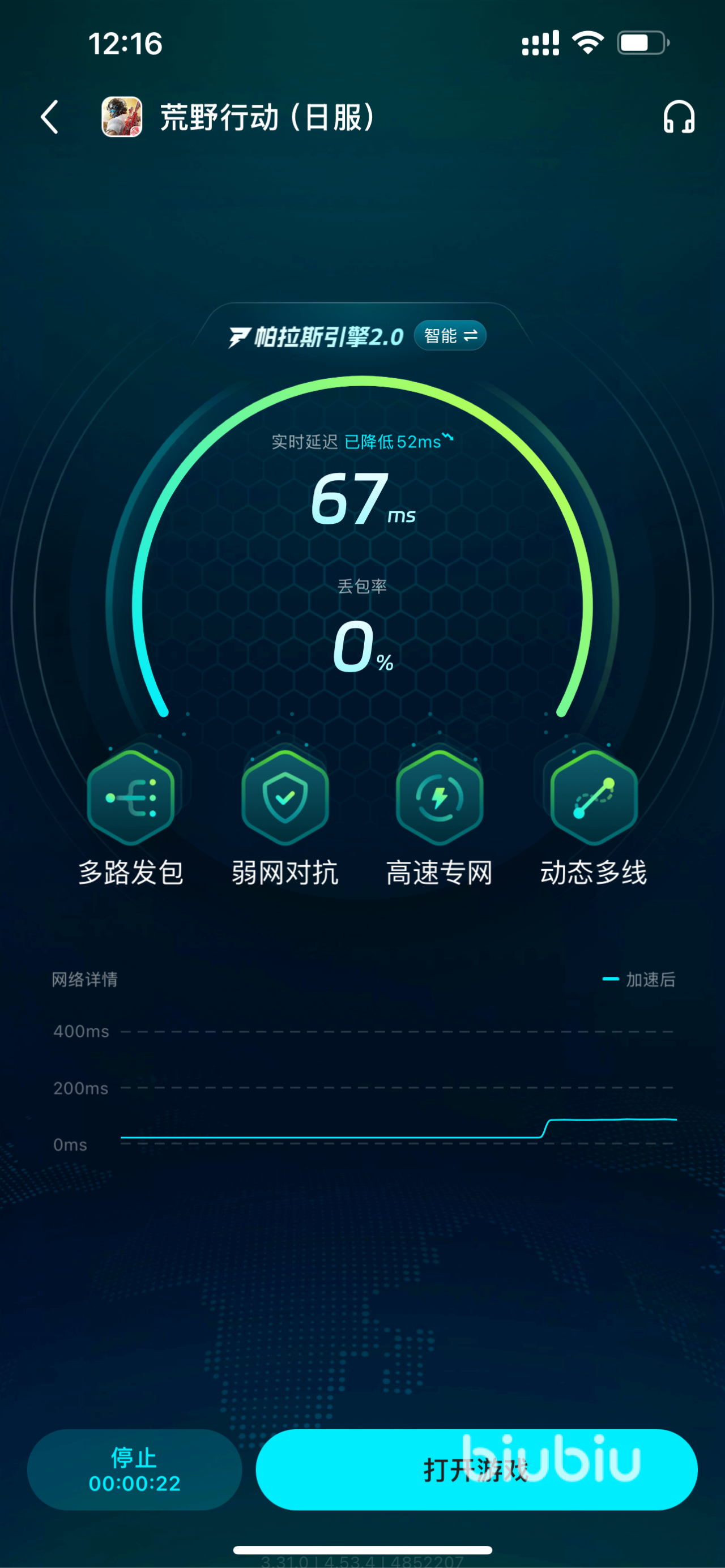 要是我们在后面遇见其他对手时延迟高,就很难招架住对方的火力,从而被直接秒杀。这时可利用好biubiu,稳定提速后,即可流畅出招,轻松用轻机枪扫射对方!若是即将在决赛圈时突然掉线,就会让吃鸡的机会让给对方。使用了加速器之后,自然可将荣耀留在最后,避免失利。如果出了新的联动活动之后,就得更新后才能玩。使用了加速器之后,下载起来才不费劲,让你与队友一起及时开黑!另外加速步骤也更简单,找到提速即可!