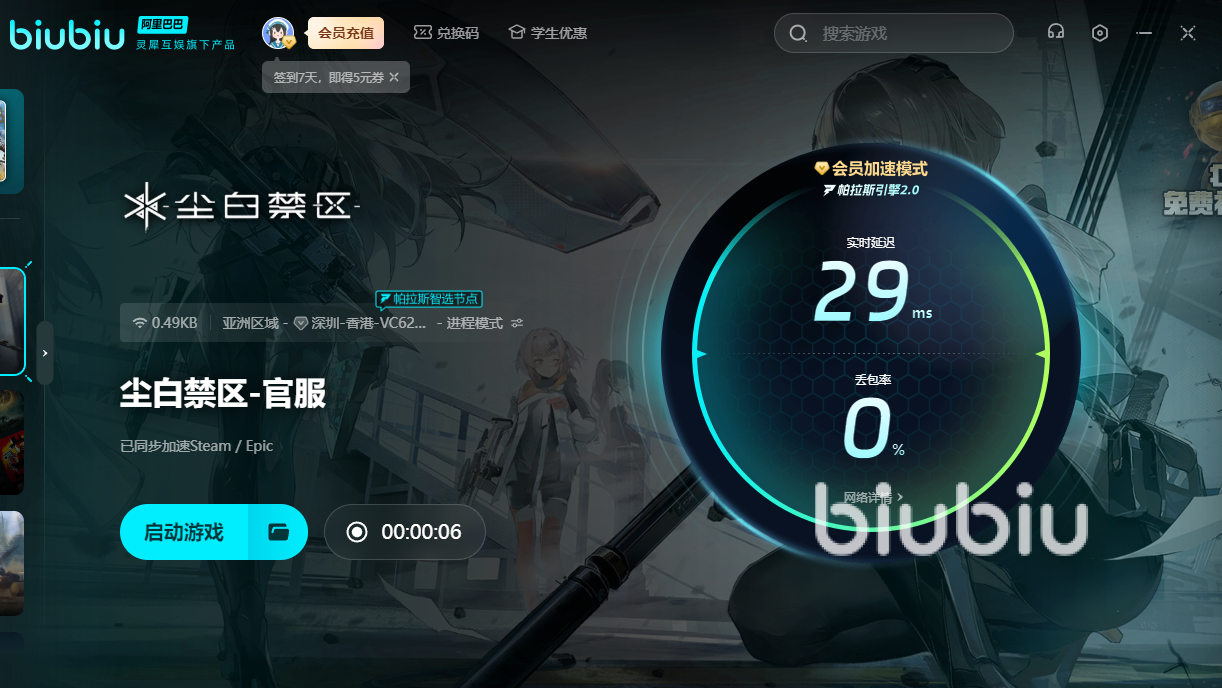 尘白禁区作为享誉全球的角色扮演射击大作,如今暂时还没有出现国服,所以想要与全球的人一起共同对抗变异生物。我们还要借用biubiu,加速后才可以获得免疫能力,并展开决斗!新用户的话可领取三个小时的免费加速,另外新老用户输入【biubiu不卡顿】,就可额外领取三天免费加速,才能继续与异世界怪物展开搏斗。如果用特殊技能时太卡的话,可能就无法命中对手,从而浪费自己的能量。用上加速器后,才能准确解决每个对我们有威胁的生物。