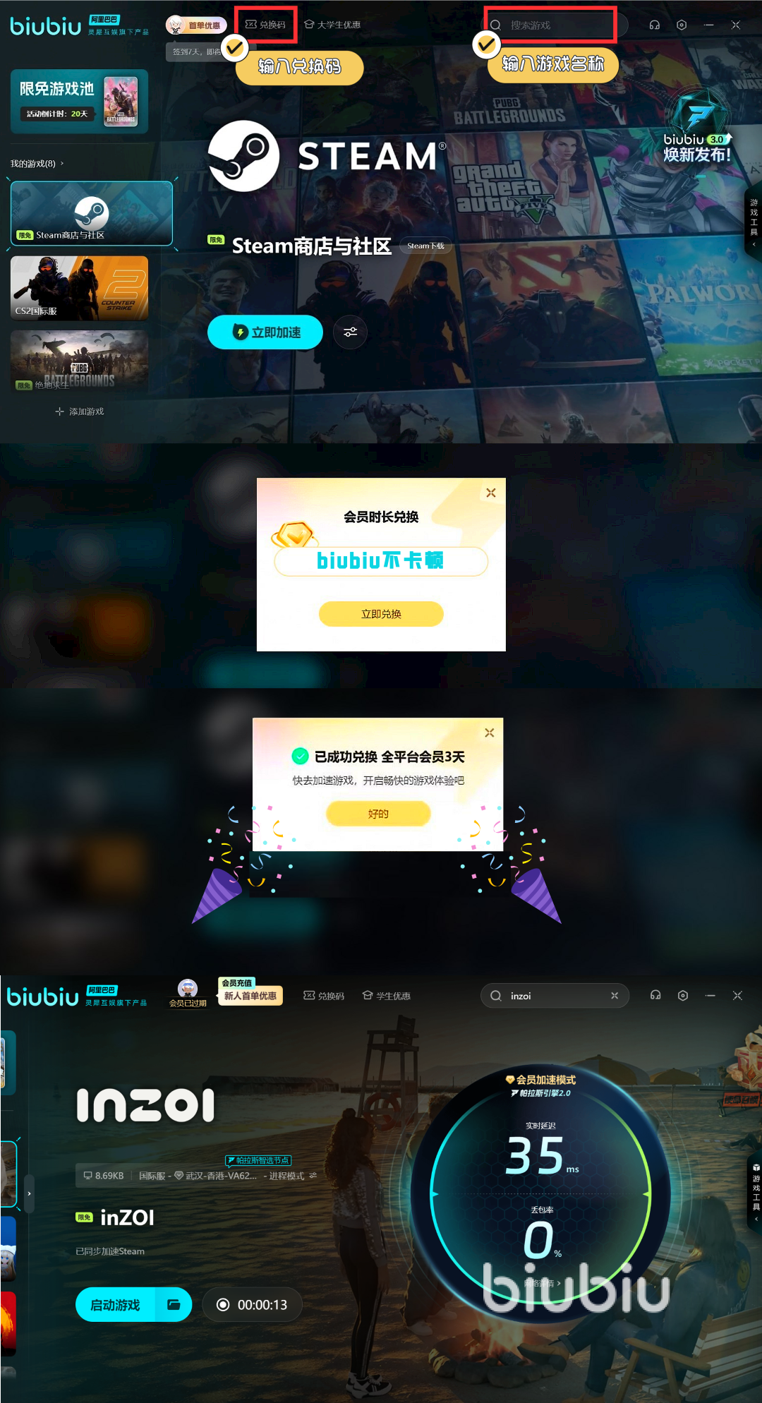 在参加重要演出时,网络卡顿可能导致表演失误,错过提升知名度的机会。这时biubiu加速器就能派上用场。新注册用户有3小时免费加速时间,让新玩家在初涉明星职业时,就能享受流畅的网络,顺利完成各种表演和任务,不用担心卡顿带来的困扰。新老用户都可以使用【biubiu不卡顿】兑换来获得3天免费加速权益,利用这3天时间,玩家可以尽情地在游戏中发展明星事业,参加各种活动,提升角色的知名度和影响力。