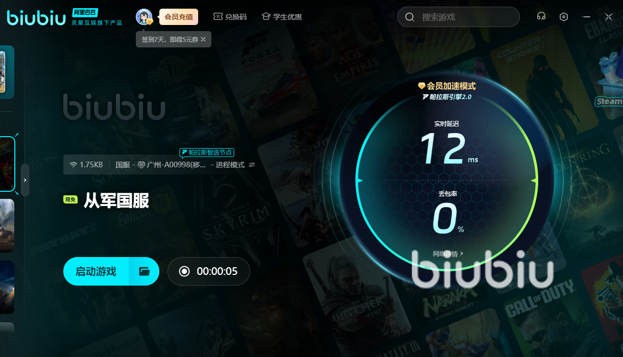 如果我们想更快的与队友们一起在战争中从军,就优先要搞定从军下载速度慢怎么办等问题。可以先使用biubiu,加速后便可提升下载速率,从此节约更多时间。让你进一步加入真正的战争军队中,并勇敢与敌军开火。