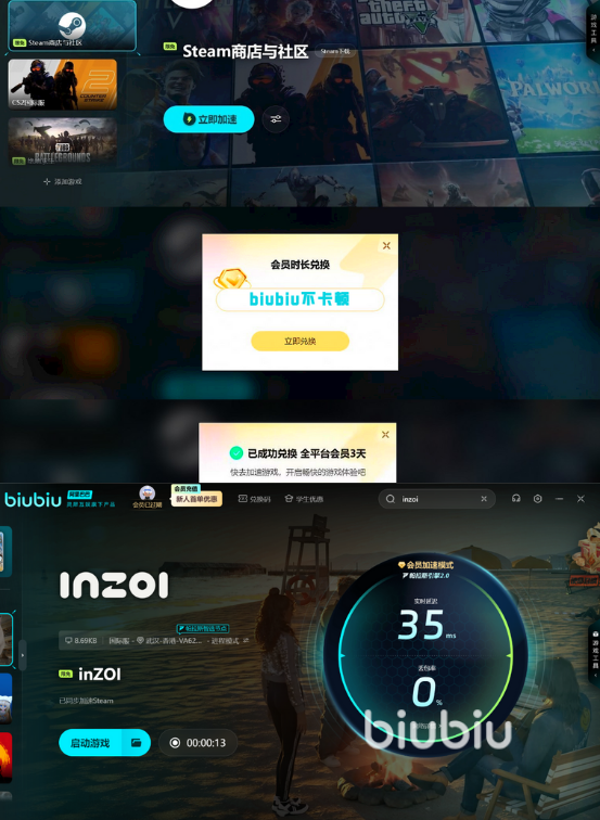 大家在体验这款游戏的时候还会遇到卡顿等多种现象,这个时候最好的方法就是用biubiu加速器来降低延迟,现在新人注册就可以获得3小时的免费加速时间,新老玩家都可以使用【biubiu不卡顿】兑换码来获得3天的免费加速时长。