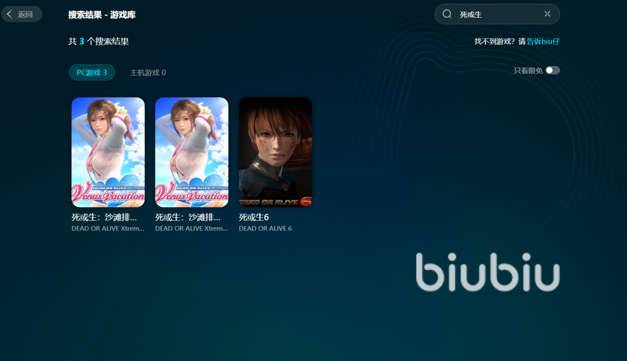 此外,为了给玩家提供更丰富优质的加速体验,biubiu游戏库保持持续更新,可见已有“死或生”系列的多款经典作品,大家使用一个会员账号,即可享受PC、主机端海量的作品优化,性价比很高。