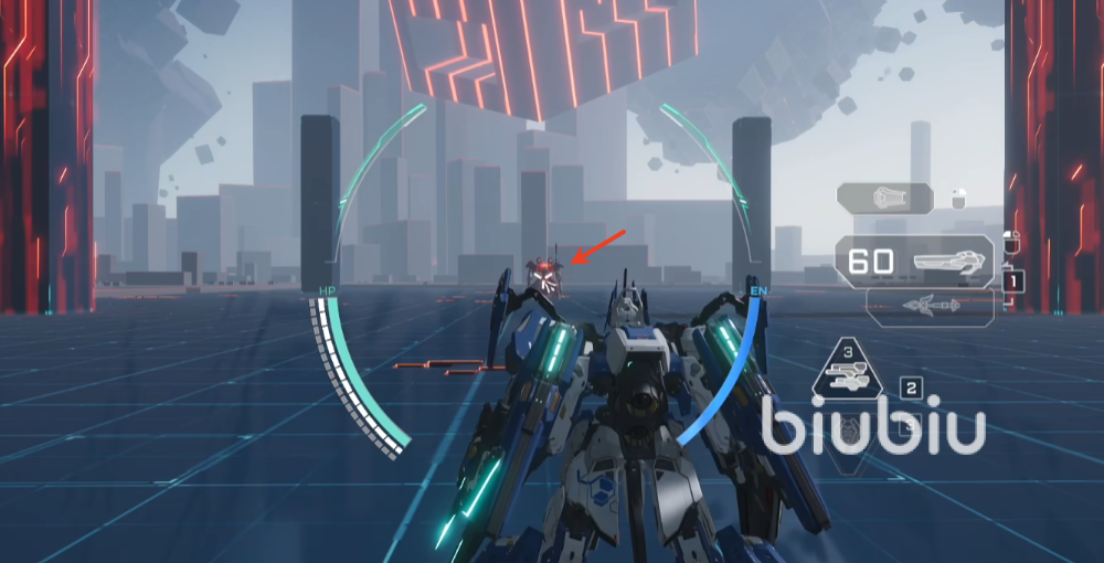 首先是关于【锁定】,每个机甲锁定距离不一样,屏幕上有一个圆圈,敌人处于圈内,同时处于锁定距离内,系统就会自动锁定。这时候射击、近战会自动瞄准,锁定需要时间,敌人离着太远锁定不到,自己手动瞄准射击也可以。