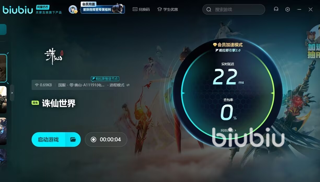 当然考虑到许多伙伴既玩手游又玩端游,该加速器提供了跨平台服务。玩家只需在电脑和手机端分别下载这款加速器,并使用同一账号登录,即可实现信息互通,一次续费即可享受双端加速服务。在续费前,玩家伙伴们可以使用兑换码【biubiu不卡顿】,来获取一个为期3天的加速体验机会,要是新人的话,还能在登录的时候得到3h免费体验时间。初次的充值可以额外获取优惠,价格十分合理,旨在满足广大玩家的需求。并且操作的方式也十分的简单,只需将有游戏的名字输入到检索栏目,就能看到对应的版本,选择当前的区服启动加速即可享受优化服务了。