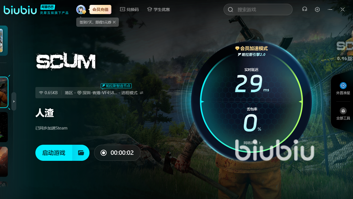 人渣是款风靡全球的角色扮演3D动作游戏,如今暂时没有上线国服。所以为了来到新的岛屿中,还要借助biubiu。有效加速后,才能被海水冲刷至该岛屿中。若是想要试玩的话,可通过新用户领取3小时的免费加速福利体验一波。另外新老用户输入【biubiu不卡顿】,即可额外获得三天免费加速。若是在收集生存资源时太卡,就有可能被抓回监狱中了。这时可用加速器,方可快速解决ai敌人,并逐步壮大自身。