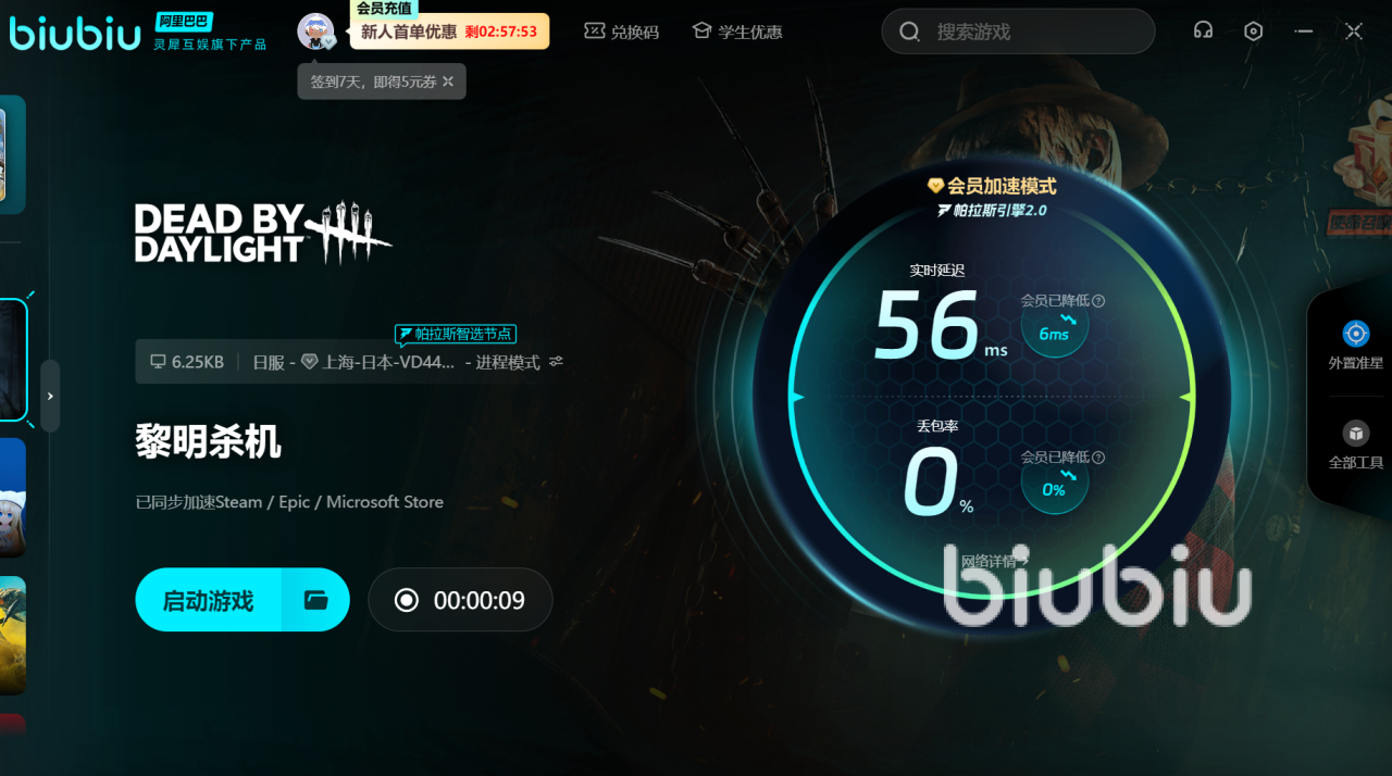 biubiu加速器还为新老用户准备了额外的惊喜,新用户会获得免费3小时的加速时长,使用完之后利用兑换码【biubiu不卡顿】,即可领取3天免费加速时间。这意味着无论是刚刚踏入《黎明杀机》世界的新手,还是早已在游戏中身经百战的老玩家,都能获得更多的免费加速时长,尽情享受游戏带来的紧张刺激。