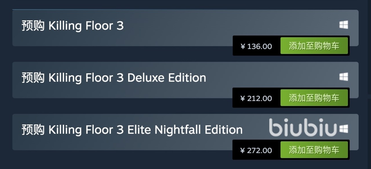 官方消息,Killing Floor3在Steam国区的标准版售价为136元,数字豪华版售价为212元,而精英夜幕版则售价为272元。不同版本将提供不同数量的额外内容和福利,供玩家们根据自己的需求进行选择。