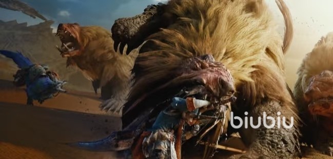 系列制作人辻本良三始终强调,《荒野》并非传统意义上的开放世界游戏,而是通过无缝地图强化“狩猎沉浸感”。开发团队摒弃了大而空的开放设计,转而聚焦场景密度与细节互动:玩家可能在沙原偶遇受伤的怪物,追踪血迹发现隐藏巢穴;或是在雷暴中目睹古龙与群居生物的领地冲突。这种生态动态化的设计灵感,源自总监德田优也对“怪物行为逻辑”的执念——他要求每个怪物群体不仅有首领指挥,更需根据环境独立决策,例如牙兽种会因领袖位置变化调整攻击策略。