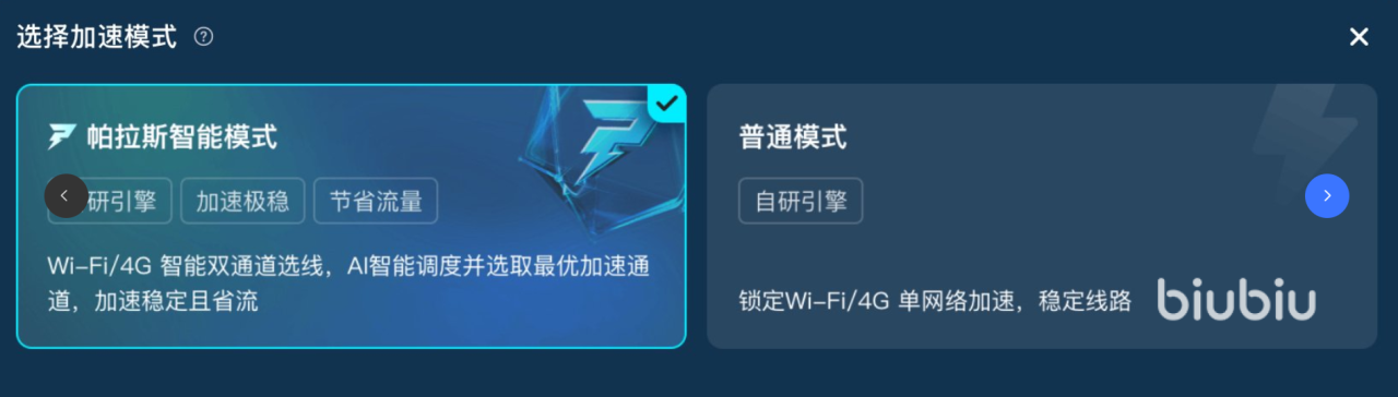 这个加速器操作特别简单,一键就能开启帕拉斯智能模式加速,不用自己费劲设置,AI会自动帮你选最快的线路,既省流量又省心。它还有个智能双通道功能,能根据网络情况自动在WIFI和4G之间切换,减少游戏延迟和掉线,让你在国际服玩得超顺畅,完全不用担心卡顿。