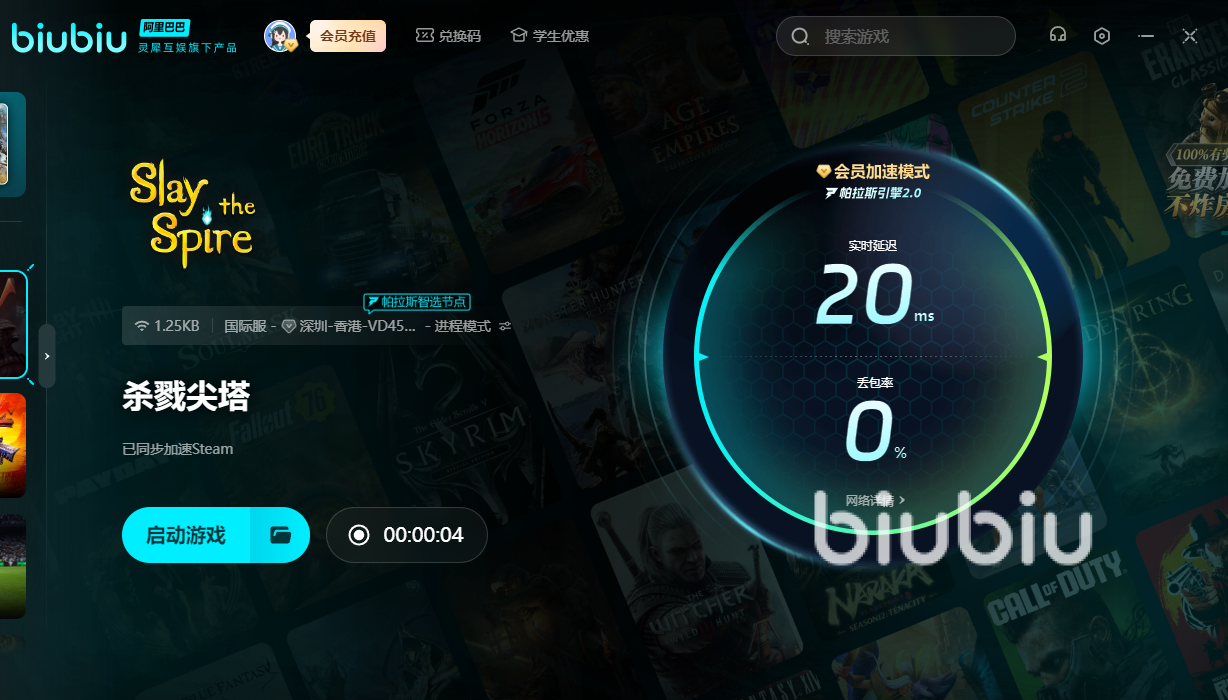 杀戮尖塔作为一款优秀的海外佳作,虽然融入了许多西方玩法的卡牌元素,但是却暂时没有上线国服。所以我们可以用上biubiu,通过提速后自然能获得魔法,并勇敢攀登高塔。对于新用户来说,可领取3小时的免费加速。另外新老用户输入【biubiu不卡顿】,即可额外获得三天免费加速。要是在投掷卡牌时太卡,那么就会出错牌,甚至错过出牌时间。所以可尝试用上加速器,才能在规定时间内出牌。