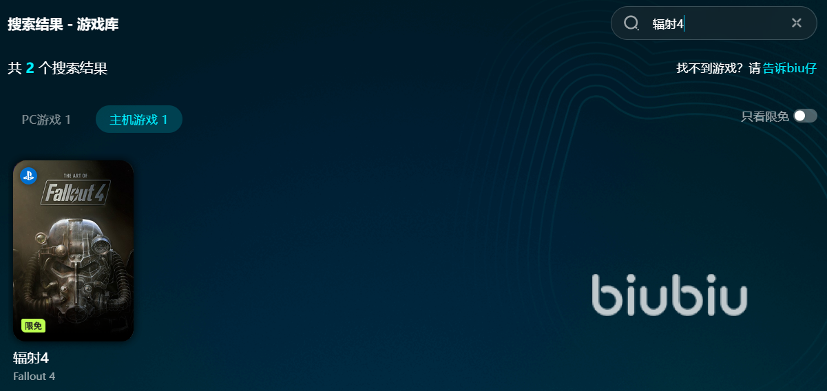 然后打开软件,搜索辐射4游戏,选择所在的区服,一键开启加速。接下来,biubiu将展示辐射4当前加速情况,发布目前加速时间、加速效率。