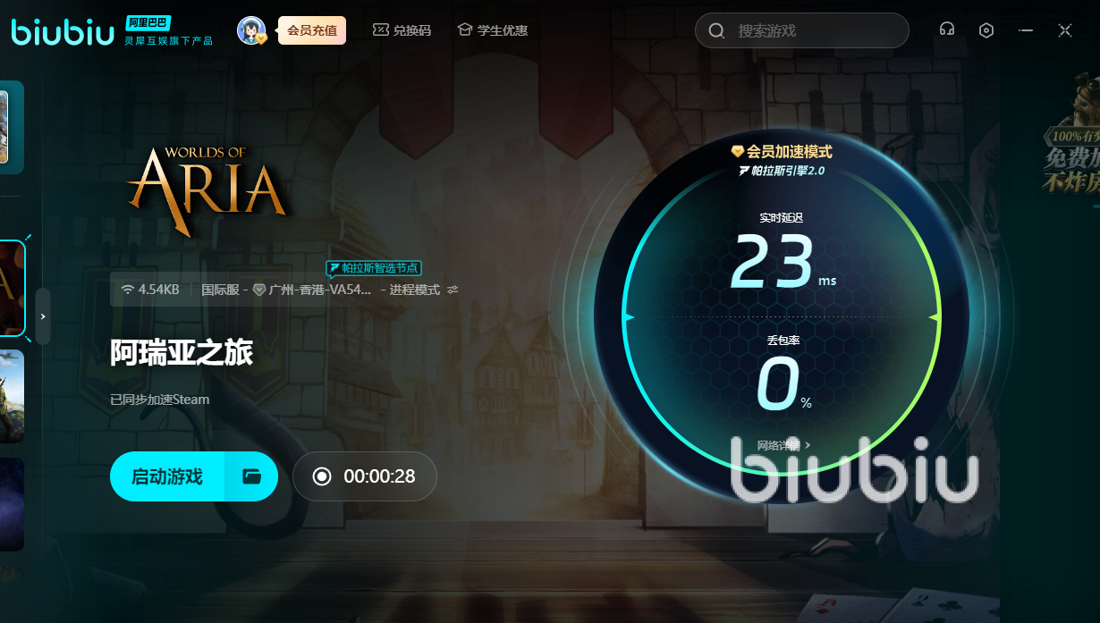 阿瑞亚之旅作为一款海外优质冒险大作,前暂时没有上线国服。我们想要体验的话,要借助biubiu,可远渡重洋来到新的世界中冒险。新用户的话可领取3小时的免费加速,试玩结束后,还想加速的话。新老用户可输入【biubiu不卡顿】,即可额外获得三天免费加速。若是大家开始冒险时太卡,便无法做出正确抉择,导致剧情走向坏处。这时可用加速器,提速过后便能正确闯关,避免失利。