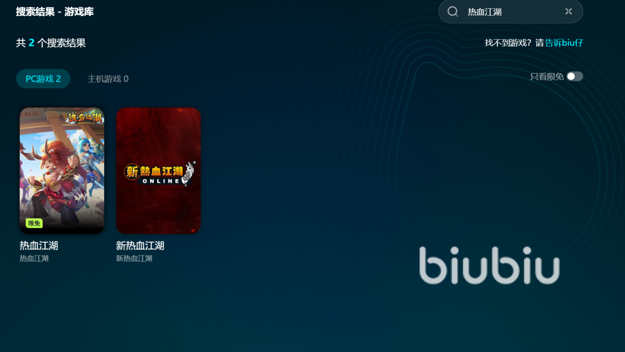 热血江湖作为武侠题材的游戏,在国内市场还算是比较火热的,毕竟这类型的游戏以多人联机为主,而很多玩家想要尝试不同题材的武侠江湖游戏,那可以到biubiu的最新游戏上线专区,专区内武侠的游戏还是蛮多的,很容易找到新游戏。