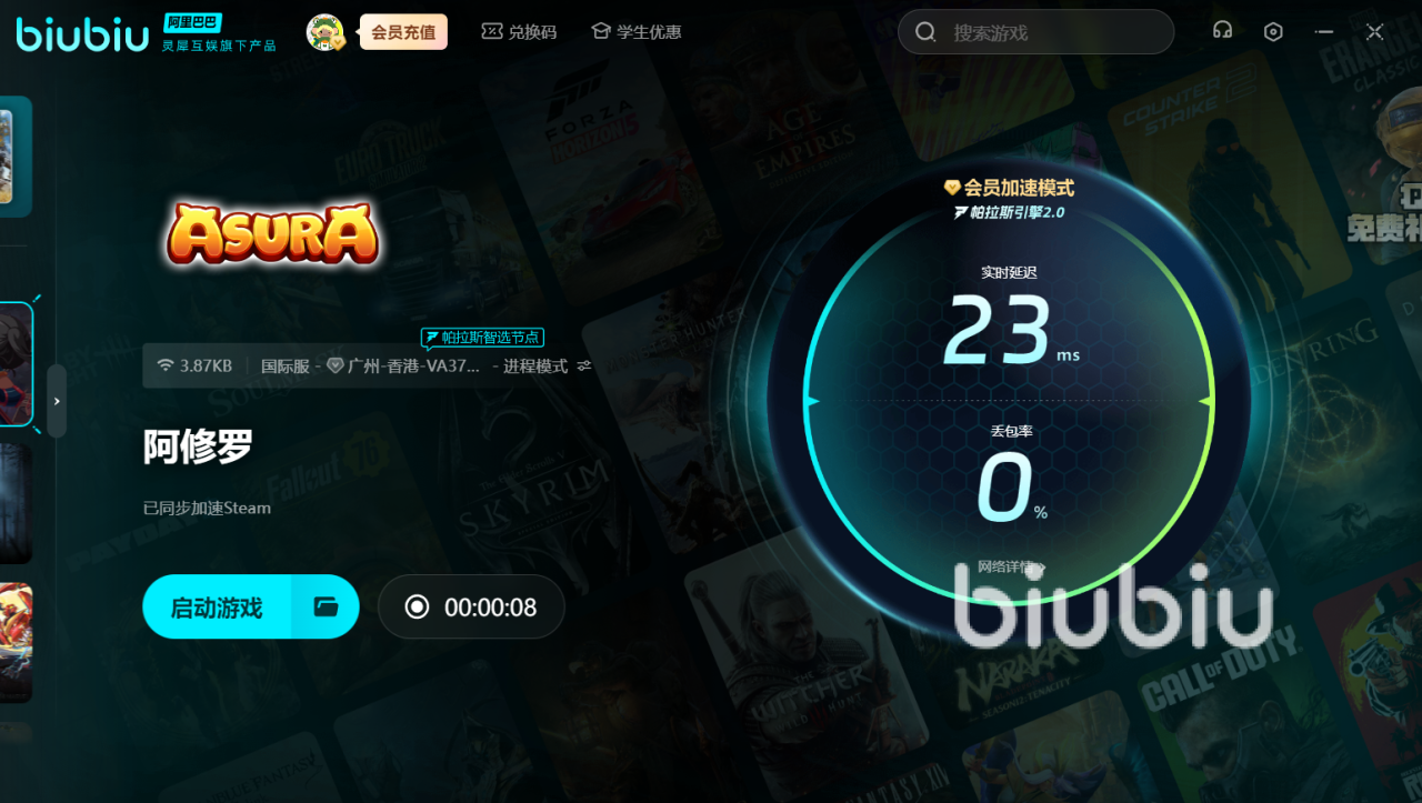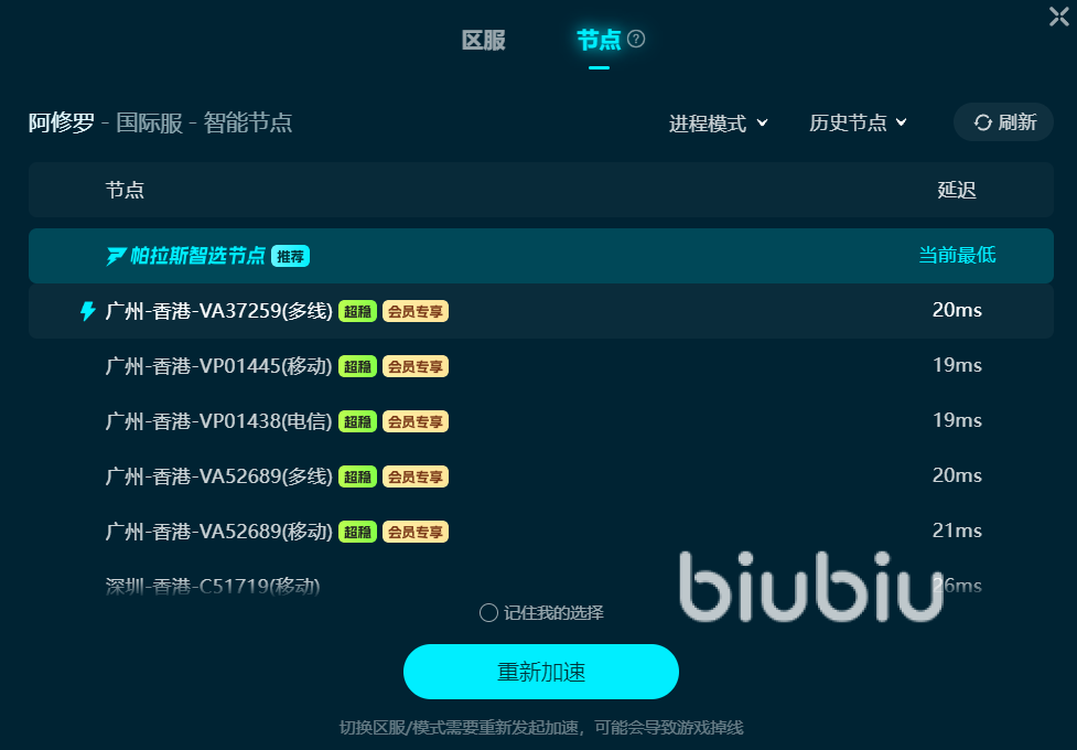 然而,不少玩家在游玩过程中会遇到一个棘手的问题:游戏卡顿。由于其服务器位于海外,国内玩家直连时容易受到网络波动影响,导致游戏体验大打折扣。解决阿修罗卡顿问题,强烈推荐有电竞专享的biubiu加速器。它能有效解决因服务器距离带来的网络难题,即使玩家与服务器相隔甚远,也能在其辅助下实现连接又稳又快。