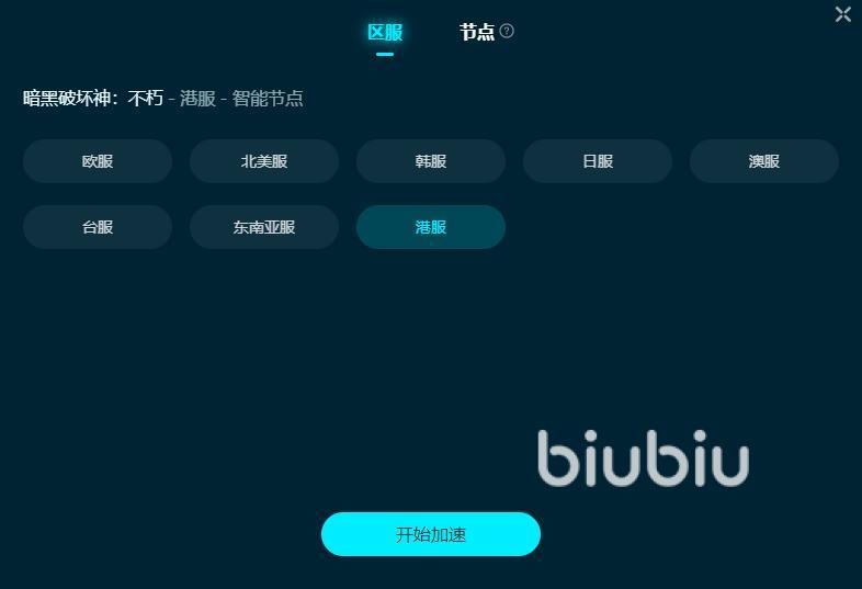 暗黑破坏神不朽含有许多区服,不同服务器的玩家群体都是不一样的,要是你想和其他区服的玩家过过招,在开始加速前,就能直接切换到对应服务器,接着还能从众多节点中自由选择,找低延迟的去用,也能直接设为智能节点,让系统去帮你完成这步。