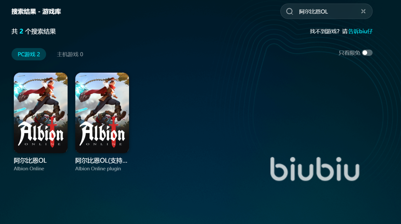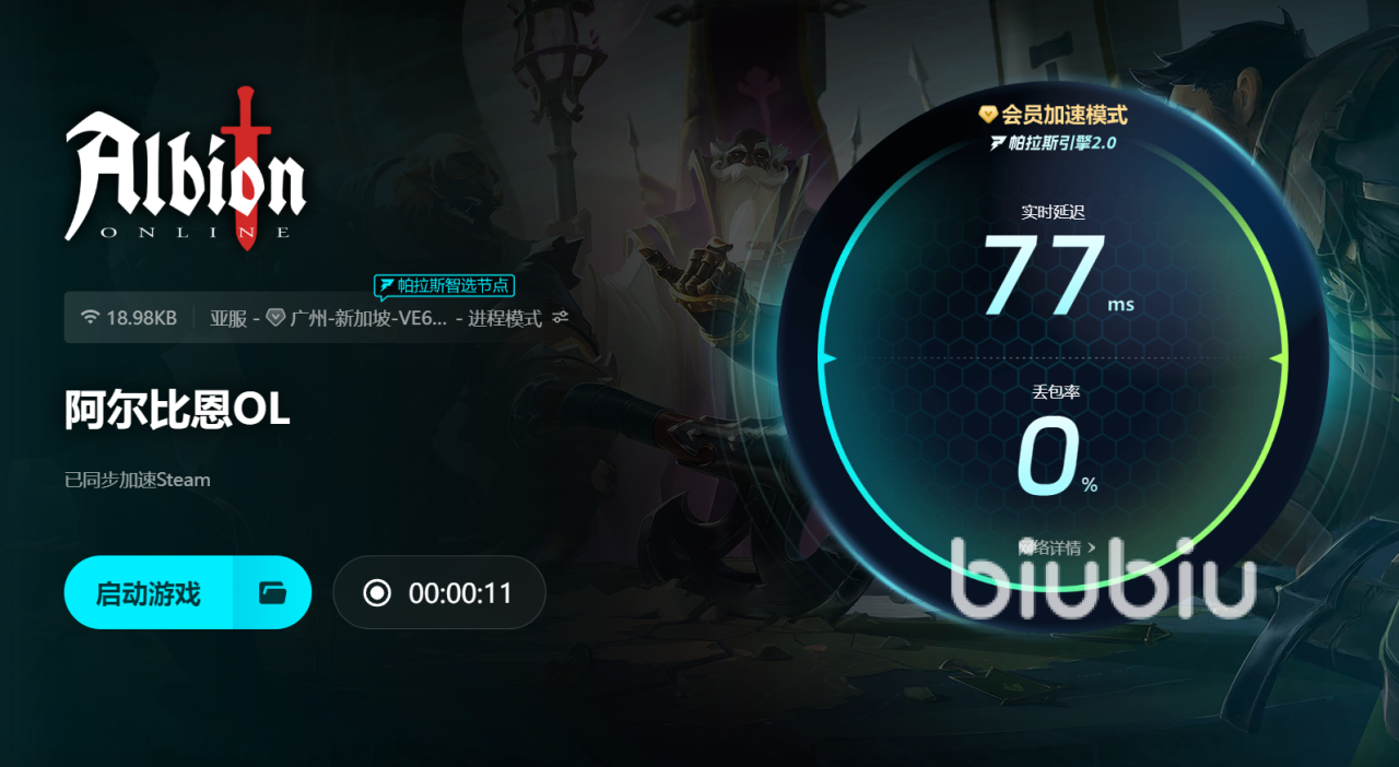 阿尔比恩OL国服的游玩人数并不多,多数还是在外服以及国际服的玩家较多,这使得国服联机的时候要找好久的队友,但是国际服就能迅速找到队友,同时更新频率还比较快,就是在国际服有一个问题,就是网络特别容易卡,而且一卡就是好几个小时,根本没法正常游玩,biubiu刚好是支持绝大部分的国际服的。