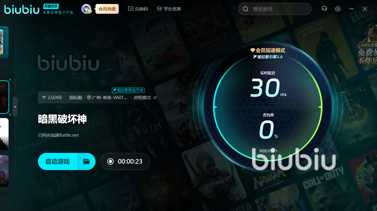 刚玩暗黑破坏神时太卡的话,相信一出新手村后就会被路过的野怪杀死。必须用上biubiu,如此才能在这黑暗丛生的世界中侥幸活下来,继续发育成为新世界的神!新用户的话可获得3小时的免费加速,另外新老用户输入【biubiu不卡顿】,就能额外领取三天免费加速。如果大家选择和队友一起下副本刷怪的话,延迟过高就无法配合好。用上加速器后,就可做好自己的本分,让每个人都分工明确,即可越阶解决boss!