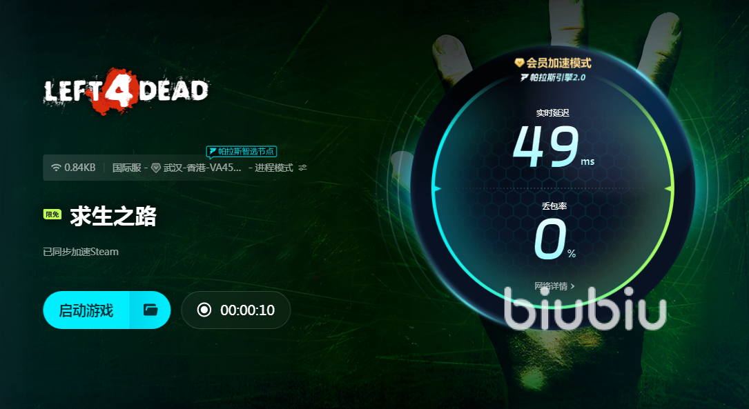 这款第一人称射击游戏,设定在了爆发瘟疫之后的世界中,玩家所扮演的幸存者要和队友一起合作,与丧失大军进行战斗,进而逃出生天。在剧情模式下,是由玩家和三名队友组队,对抗模式中是由4名幸存者阵营玩家和4名特殊感染阵营玩家对抗。所以是一款需要进行联机才可以更好体验的游戏,为了能够保证此过程中流畅,不出现掉帧这样的问题,biubiu加速器是非常好用的一款工具,具有操作简单,功能强大等一系列优势。大家只需要通过上面的链接就能直接下载安装biubiu了,然后打开输入游戏名称,搜索到选项之后进行一键点击优化就可以。不需要复杂操作,biubiu现在使用的帕拉斯引擎2.0技术,将很多加速科技都集成在了一起,只需要一键优化以后就能自动工作。玩家只要在加速页面中打开游戏正常运行就可以。
