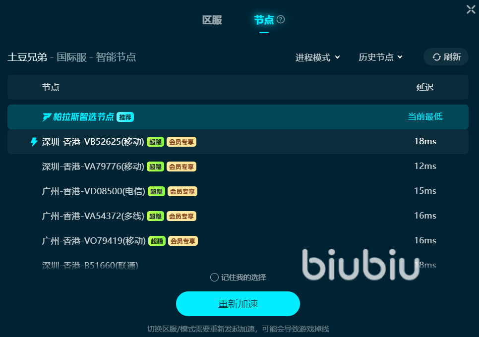 要解决掉帧问题,优化网络环境刻不容缓,biubiu加速器便是解决这一难题的得力助手。在《土豆兄弟》这类即时战斗中,动作都需与服务器实时同步,一旦网路出现波动,在线数据传输便会受阻,进而引发卡屏、走位不顺畅、技能释放延迟等系列问题。