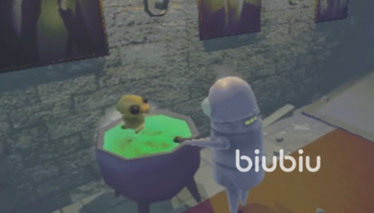 进入地图后里面的场景是非常暗的,我们需要再里面找好到一些基于物理的物品,把它挪到车子里面就可以加钱了。这里面还有些怪物的,需要用各种对策应对,个子高的怪蹲下躲在车子后面就不容易被攻击,个子小的就溜着走,把它引到魔药罐这里就可以把它练成珠子了。