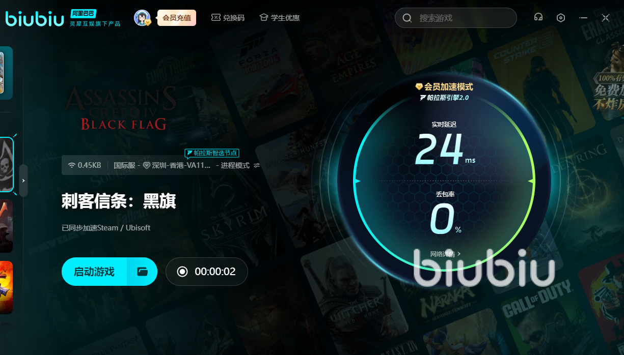 刺客信条黑旗作为一款几乎全球皆知名的冒险大作,如今暂时仍然没有上线国服。所以为了能够重塑一段传奇海盗之旅,我们还得用上biubiu,便可直接驾驶海盗船环游世界。对于新用户来说,可领取3小时的免费加速。要是新老用户输入【biubiu不卡顿】,即可额外领取三天免费加速。如果在执行刺杀行动时过卡的话,那可能还没动手就会被别人揪出来杀了。所以必须用上加速器,才能有备无患地潜行进去。