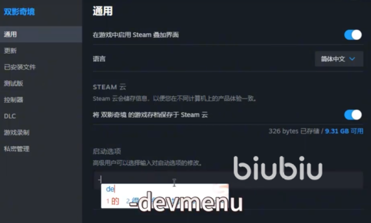 当然还有个走捷径的方式,各位如果用steam,就去游戏库里面右键游戏找到属性,然后点击进入通用页面,可以看到有个启动选项,输入代码-devmenu,然后进去游戏就能够看到新的选项了,进入了开发者模式,可以自由选择进入隐藏关。