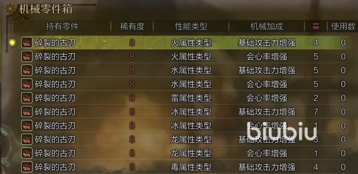 我们要是想武器更加的厉害,那肯定是要做出来相应的机械武器了,基础伤害能有不少的提升。其实机械武器在制作成功的时候拥有的5个词条就已经被安排好了,后续的强化就是把这5个词条给依次激活。但是也并不代表所有武器的词条是固定的,而是有一套序列表。