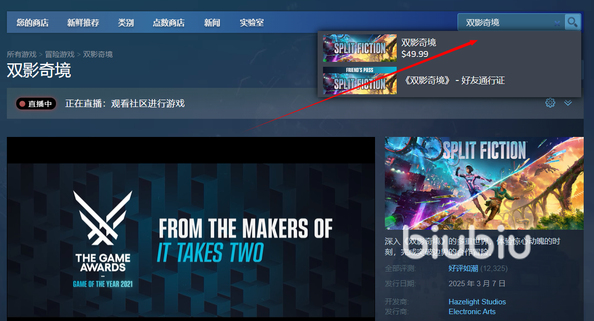 其实,它的英文原名叫做《Split Fiction》。要查找这款游戏,可以在Steam平台的搜索栏中输入“双影奇境”或其英文名“Split Fiction”,即可找到游戏页面。