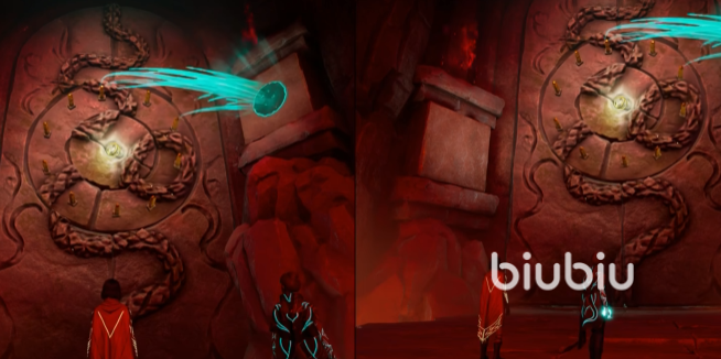 后面我们会遇到岩浆,还需要攀爬墙壁以及雕像,两个人一定要配合好,一头一尾的跳到下一个支撑点的时候,也要小心岩浆的落下。掉落地底之后,会看到裂缝,两个人还是要配合好,躲过各种拐弯的地方,正常到达平地上面。