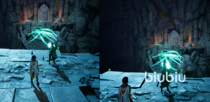顺利通过之后就可以看到有个拉弓的铜雕像,靠近之后抓取到,两个人就可以闯过入口,来到佐伊记忆中的家。