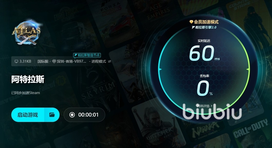 biubiu支持的游戏类型非常的丰富,玩家可以在这里面找到上万款不同类型游戏的加速连接,而且它的加速步骤也很简洁,我们可以直接在其首页的搜索框输入阿特拉斯,找到相应的游戏,然后点击加速键就可以快速完成加速了。加速之后,我们可以直接在其详情界面启动游戏,同时后台也会为我们实时追踪网络变化情况,像加速时间,加速延迟,丢包数据等等我们都能第一时间掌握,它还为我们同步加速steam平台,玩家们后期想要更新游戏的话,都能更顺利的进行下载,速度能提升500%左右,让玩家们都能更快的完成游戏竞技。而且对于新玩家来说,我们对于游戏玩法不了解也没有关系,比如还有专属社区,在这里我们是能够看到其他玩家的上分技巧,快速掌握,让我们更快成为游戏高手。