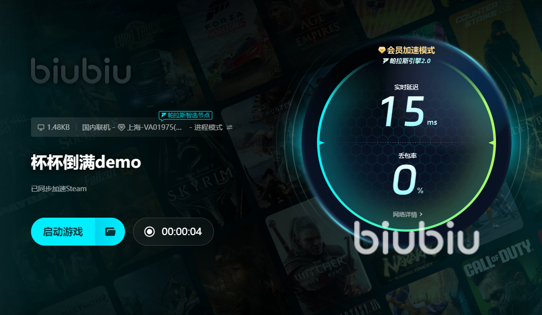 然而,这些问题并不完全是游戏本身的问题,很多时候,它们主要由网络不稳定和连接问题引起。为了解决这些问题,使用一款可靠的加速器就成为了非常有效的解决方案。针对《杯杯倒满》Demo卡顿问题,biubiu通过以下几项技术,使得玩家能够在《杯杯倒满》Demo版中获得更流畅的游戏体验: