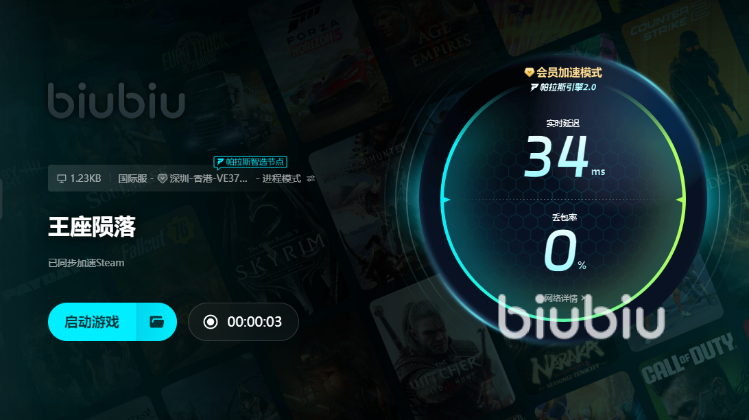 此外,biubiu还支持大部分国际服的加速,尤其是在访问国外服务器时,biubiu能够提供专线加速,有效避免因为跨境网络传输引起的延迟和掉线问题。对于《王座陨落》这类有国际服的游戏,biubiu加速器能够帮助玩家突破地域限制,享受更稳定的全球联机体验。