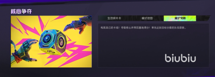 核心争夺:这个玩法模式下面需要玩家构筑自己的卡组,然后通过积攒得分来获取胜利。其实大家就可以理解成为踢足球模式,利用卡组来强化自己的能力,然后跟队友配合传递核心,送进自己的基地就可以获胜了。