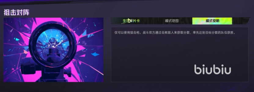 狙击对阵:这个玩法下面对于玩家们的命中操作要求是更高的,因为所有人是只能够使用狙击枪的。双方采用团战的模式进行对战,哪一方能够率先击败敌人获得目标分数,就可以带领队伍获胜了。