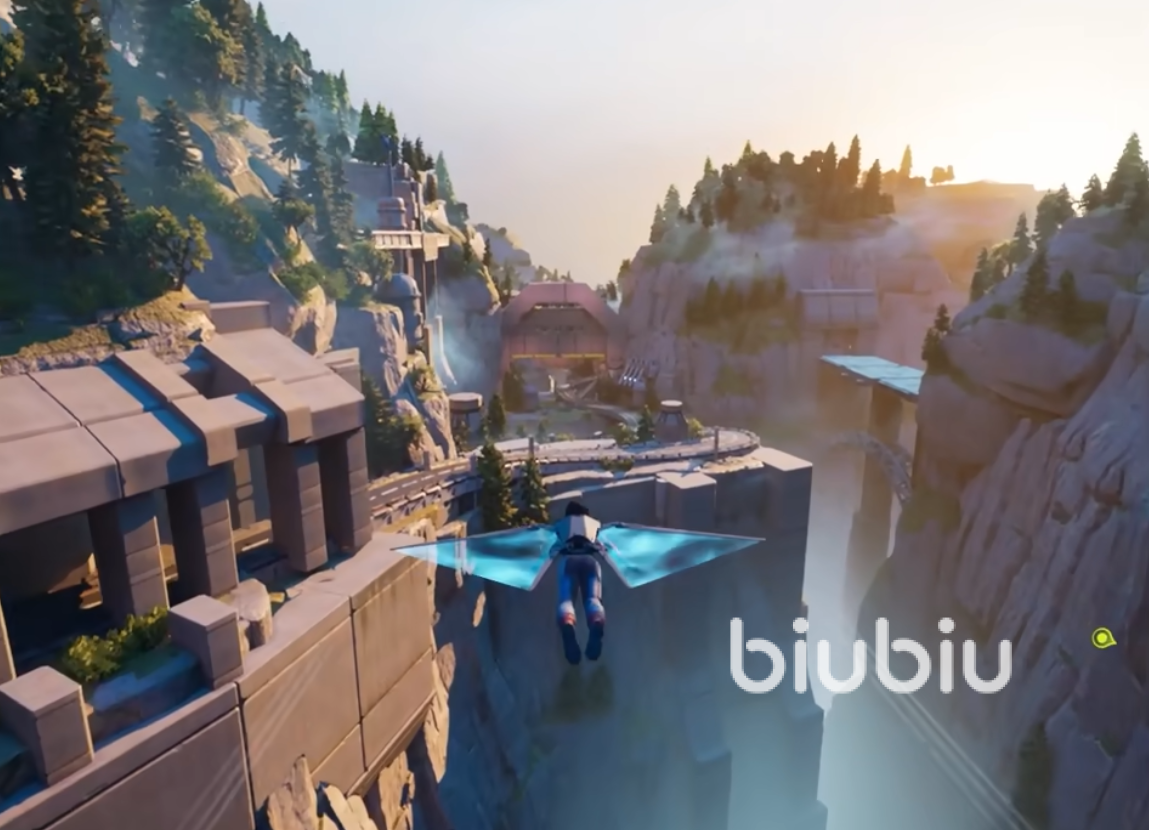 任务开始后,我们需首先找到列车劫案的支线传送点,从高空坠落并展开滑翔翼,沿着路线飞行并进入河谷,在河谷中躲避障碍物,并冲向瀑布,从瀑布中穿出。会遇到支线关卡的BOSS飞船。大家需紧跟飞船飞行,同时躲避其随机丢出的红色炸弹。飞船会进入右侧的门,并将入口关闭,需从左侧的门进入。