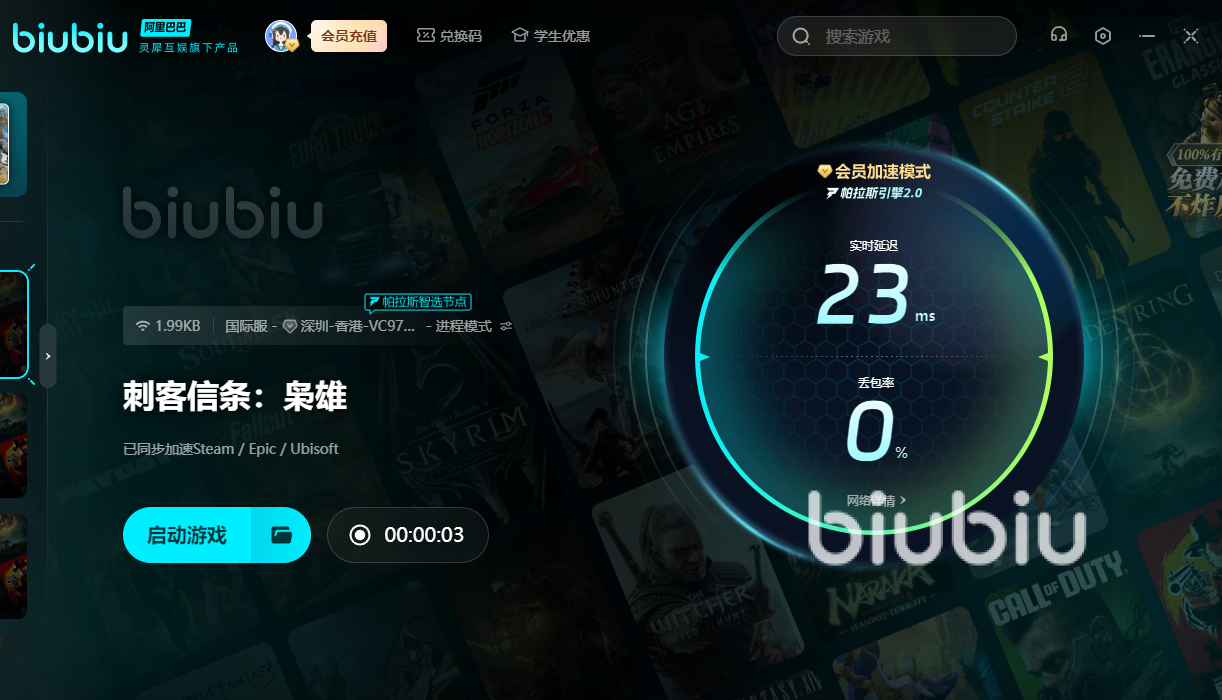 刺客信条枭雄故事发生在海外,所以仍然暂时没有上线国服。为了来到维多利亚中的场景,我们需要用上biubiu。加速过后方可穿越至遥远的从前,继续打斗!新用户的话可领取3小时的免费加速,另外新老用户输入【biubiu不卡顿】,就能额外获得三天免费加速。要是在潜行期间太卡的话,那就不能及时躲避敌人的追踪,从而泄露自己的行动。这时可用加速器,就能流畅又完美的潜行,有效刺杀任务目标!