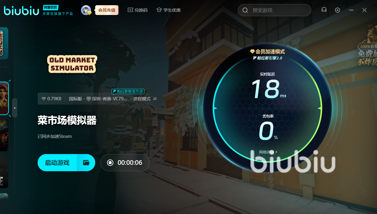 菜市场模拟器作为一款老少皆宜的国际大作,如今暂时没有上线国服。所以为了继续经营自己的菜市场,要用上biubiu,加速过后才能成为一个菜市场老板。对于新用户来说,可领取3小时的免费加速,看看经营菜市场好不好玩。如果新老用户输入【biubiu不卡顿】,就能额外获得三天免费加速。如果大家在种植各类蔬菜时太卡,那就不能获得更多有价值的蔬菜。所以建议用上加速器,才能更快种植大量的优质蔬菜。