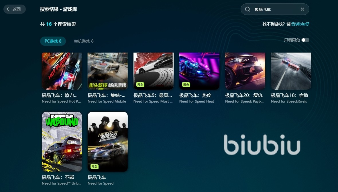 2025年03月11日 17:32 来源:虎啸至杰尼龟竞速类游戏一直是深受玩家们喜爱,它能让我们在一场场紧张刺激的竞速之旅中忘记生活中的烦恼,而且在看美国大片的时候,我们也总幻想成为其中的竞速主角。那么极品飞车加速器哪个好用?有不少玩家在体验这种竞速类游戏的时候会出现掉帧卡顿的情况,这种真是会直接影响我们的最终比赛进程,还容易导致车体出现延迟碰撞,想要有效的解决,玩家们不妨尝试使用biubiu,它是拥有着电竞级别的加速线路,能够让我们稳定连接,快速的享受极致竞速的快乐,下面也将给大家详细介绍这个平台的优势。