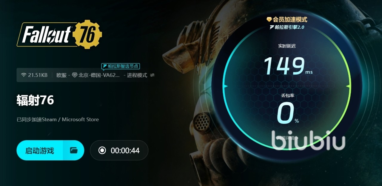 以上就是辐射76掉帧怎么办的有效解决方式了,对于这个游戏,能达到biubiu这样的加速效果已经很不错了,要知道这款加速器可是在引擎上进行了全面的升级和换代,给用户们带来的加速体验也是经过升级的,所以说在这款游戏的体验过程中,会非常需要加速的支持。