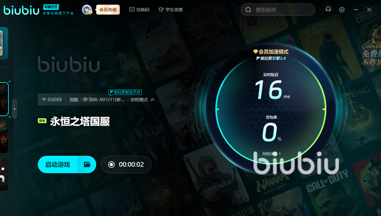 永恒之塔中的战斗特别激烈,特别是不同种族之间的英雄对战时太卡,就很容易被对方克制并消灭。所以要用上biubiu,加速后即便我们的实力不济,依然可以快速退出赛场。新用户的话可获得3小时的免费加速,另外新老用户输入【biubiu不卡顿】,就能额外领取三天免费加速。如果在参加pvp玩法时延迟高,就无法躲避对方的技能,让自己快速殒命。所以要用上加速器,才能立于先天不败之地,避免自己因小失大。