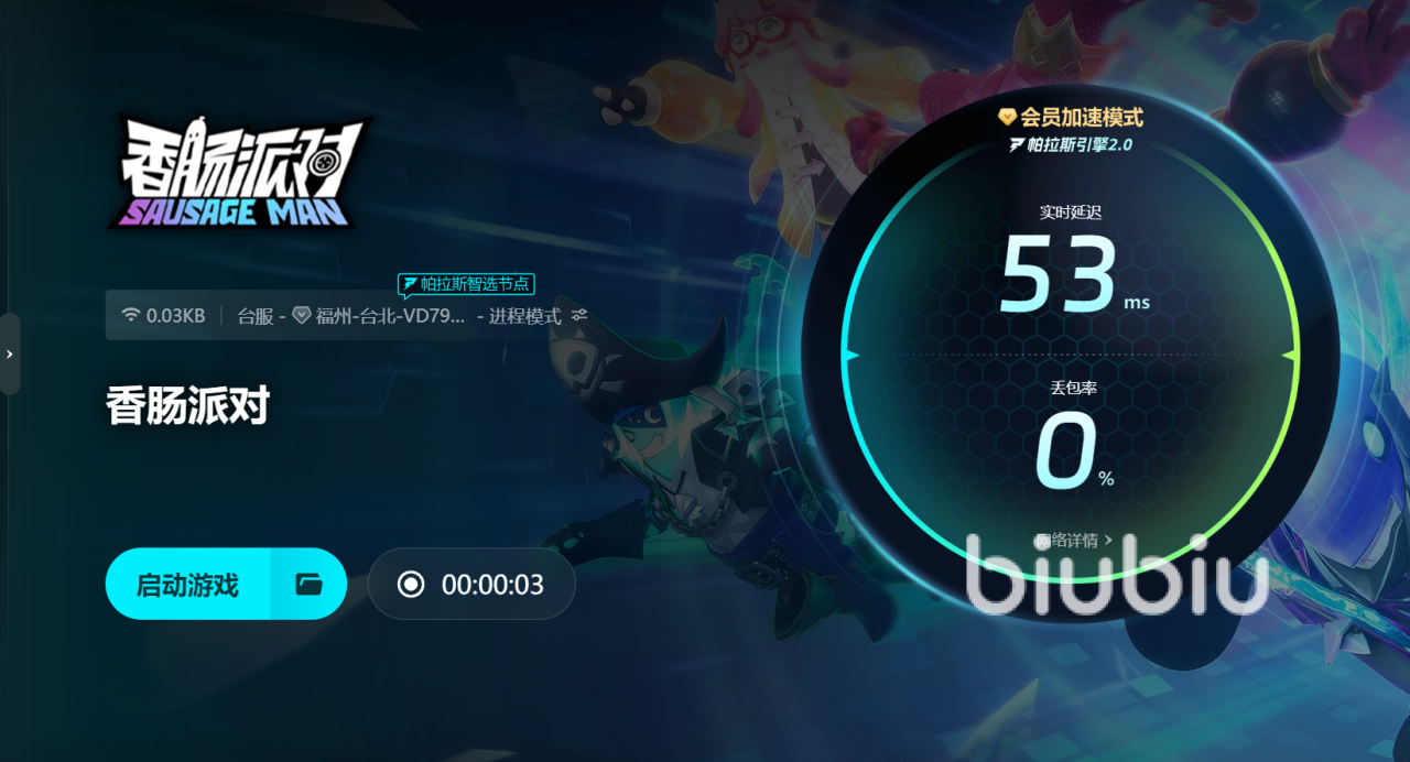 香肠派对画风属于卡通类型的,不是特别硬核风格的,而且武器设计多少带有搞笑因素,所以游戏模式普遍比较悠闲,虽然玩法是传统类的吃鸡,但是随着武器的模组增加使得战局千变万化,不过游戏还是属于多人联机模式,一局起码有几十个人,网络不好的情况下会直接落地成盒,那么为了提高网速可以使用biubiu加速器,能让玩家顺畅地体验全局,同时新人在注册后便获3小时免费加速,新老用户均可使用兑换码【biubiu不卡顿】可获3天免费的使用权哦!