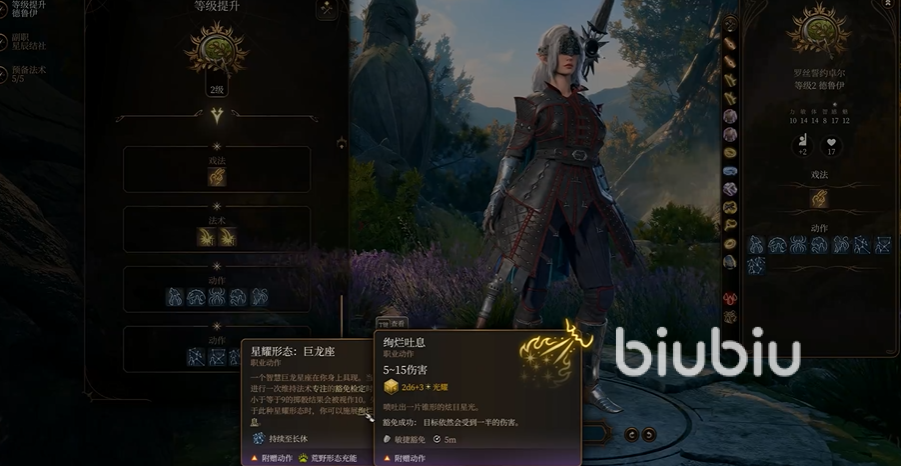 能力特点:可以采用三种不同的星形形态,分别增强治疗、战斗或战略能力。例如,弓箭手形态提供辐射伤害和星界箭矢,圣杯形态恢复自身和盟友的生命值,龙形态增加伤害和体质检定加值。