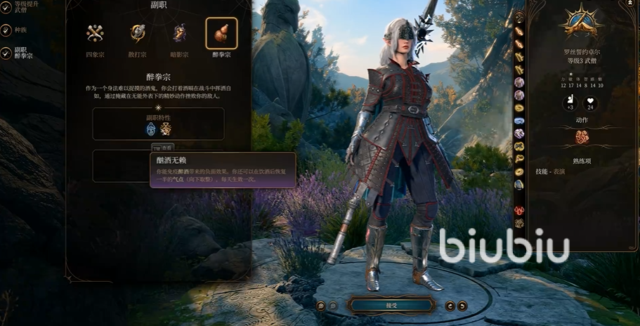 技能与强度:4级解锁醉酒打击,使敌人醉酒;7级解锁及时行乐,增加AC和对醉酒目标的命中。