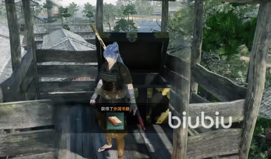 在这一个区域总共是三个宝箱,第1个宝箱是在户部监狱景点附近的高台处。玩家可以直接从屋顶出发,利用滑翔翼的方法进入到高台,在打开宝箱之后,里面就是一本外国书籍。
