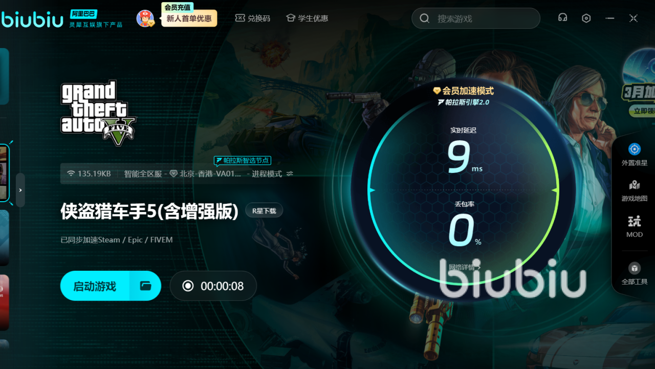 当然了,《GTAOL》的联机任务非常依赖低延迟与稳定连接,尤其在对抗埃伯哈德的空中支援或参与多人合作劫掠时,网络波动可能导致任务失败。Biubiu加速器各位要是还没用过,可要安排上了,它的智能路由优化,减少跨国服务器连接卡顿。并且此次DLC更新包超100GB,biubiu可提升下载效率最高500%,抢先体验新内容。
